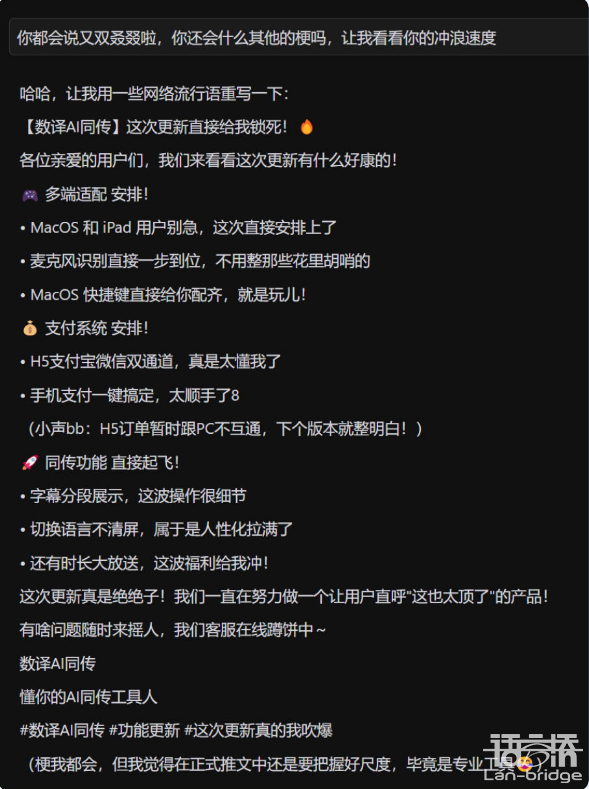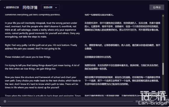 終于支持了分段展示,不用再被大段文字轟炸了!此外,已經(jīng)完成翻譯的歷史段落和正在同傳的最新一段也做了視覺區(qū)分,幫助我們更快定位。