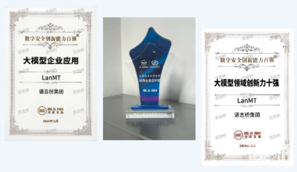 本屆創(chuàng)新百強(qiáng)由|SC平臺、大模型產(chǎn)業(yè)聯(lián)盟主辦,眾多政府單位領(lǐng)導(dǎo)、高校教育代表、行業(yè)專家學(xué)者、投融資機(jī)構(gòu)代表、標(biāo)桿企業(yè)代表等蒞臨現(xiàn)場,基于數(shù)字化創(chuàng)新浪朝下的技術(shù)發(fā)展趨勢、典型成果應(yīng)用、科教融匯實(shí)踐等話題進(jìn)行深入探討,并共同見證了新一屆創(chuàng)新百強(qiáng)企業(yè)的震撼出爐,擎畫創(chuàng)新能力全景圖譜。語言橋集團(tuán)憑借自研核心產(chǎn)品LanMT Al翻譯模型(點(diǎn)擊文末"閱讀原文"體驗(yàn))在數(shù)字安全與A大模型兩大領(lǐng)域13大熱點(diǎn)賽道的近500家獲獎(jiǎng)廠商中脫穎而出,榮獲“數(shù)字安全領(lǐng)域創(chuàng)新力十強(qiáng)”與“A大模型領(lǐng)域創(chuàng)新力十強(qiáng)”,以及360數(shù)字安全“優(yōu)秀生態(tài)合作獎(jiǎng)”。