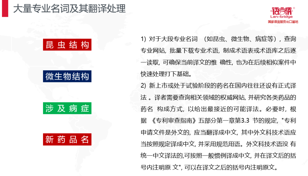 生物醫(yī)藥領域有大量的基團結構,相似句式,相似表達,昆蟲結構,微生物結構,涉及病癥,新藥品名稱等等,如果沒有前期的經驗和術語積累,這也將會成為翻譯路上的絆腳石,語言橋在這些方面做了大量的分析和儲備,確保譯文的高質量輸出。